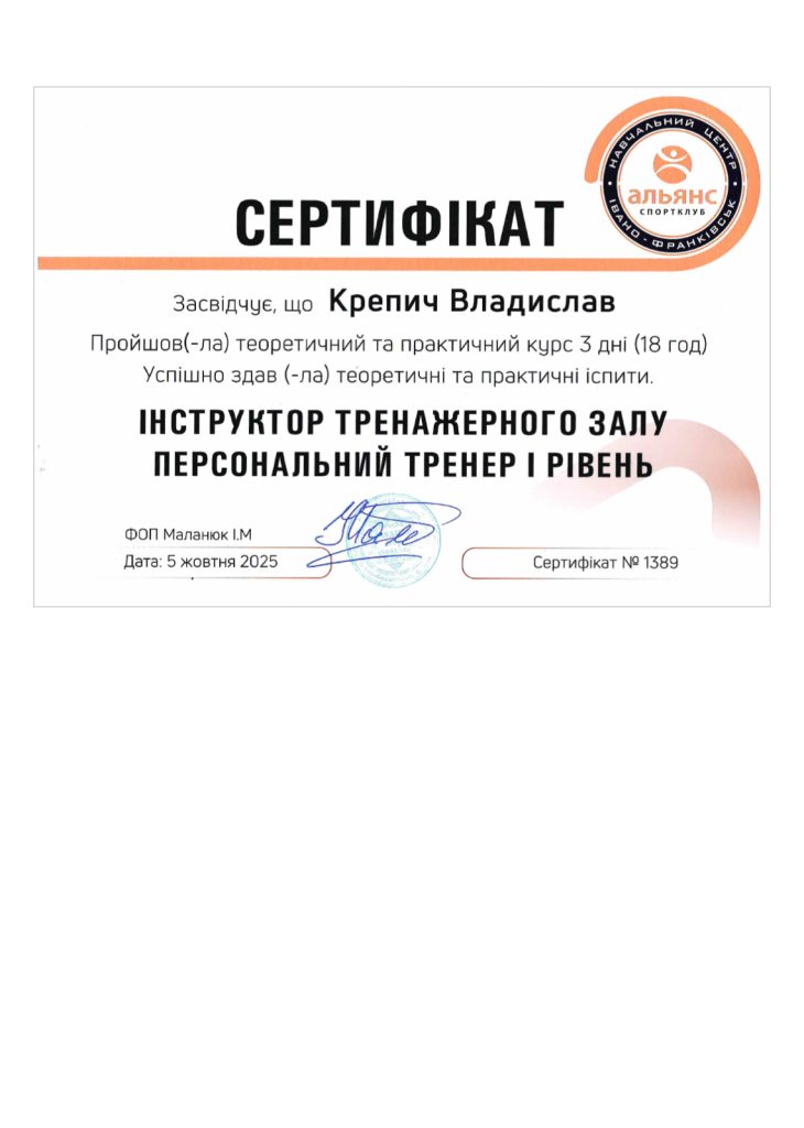 персональний тренер з силового та функціонального тренінгу